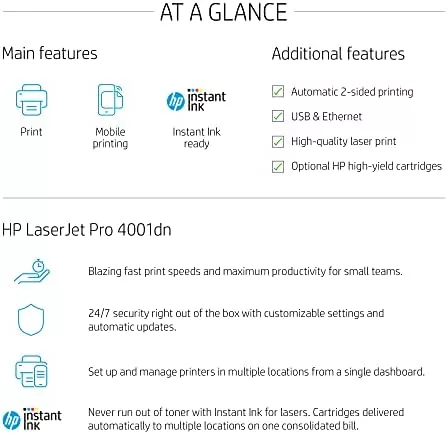 - Office Machine Features: HP ePrint, Instant-on Technology, Mopria certified